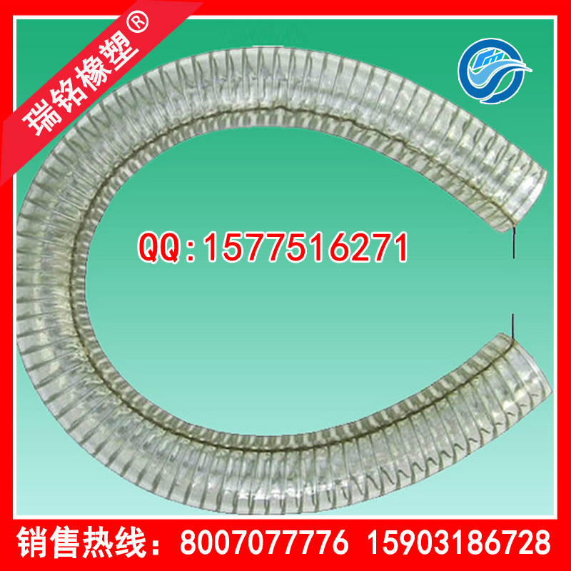 特性:該產品采用特殊TPU內嵌螺旋鋼絲加工而成,具有耐磨(優于橡膠3-4倍:軟PVC6-7倍)耐老化、抗撕裂、高透明可觀察抽吸和輸送過程,重量輕、伸縮性好、良好回彈性和低溫壓縮性等性能,有超高的強度及超長的使用壽命。