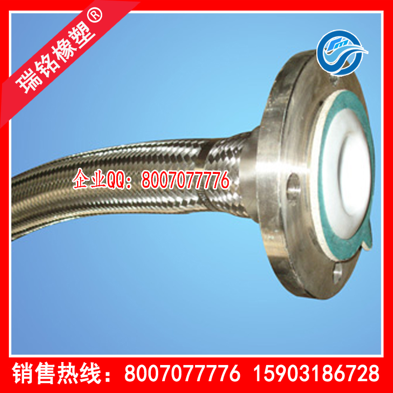 內襯四氟金屬軟管兩端的接頭:接頭主要包括螺紋連接、法蘭連接、快速接頭連接。兩端法蘭密封面全為四氟材質,保證輸送安全可靠軟管(可負壓)。