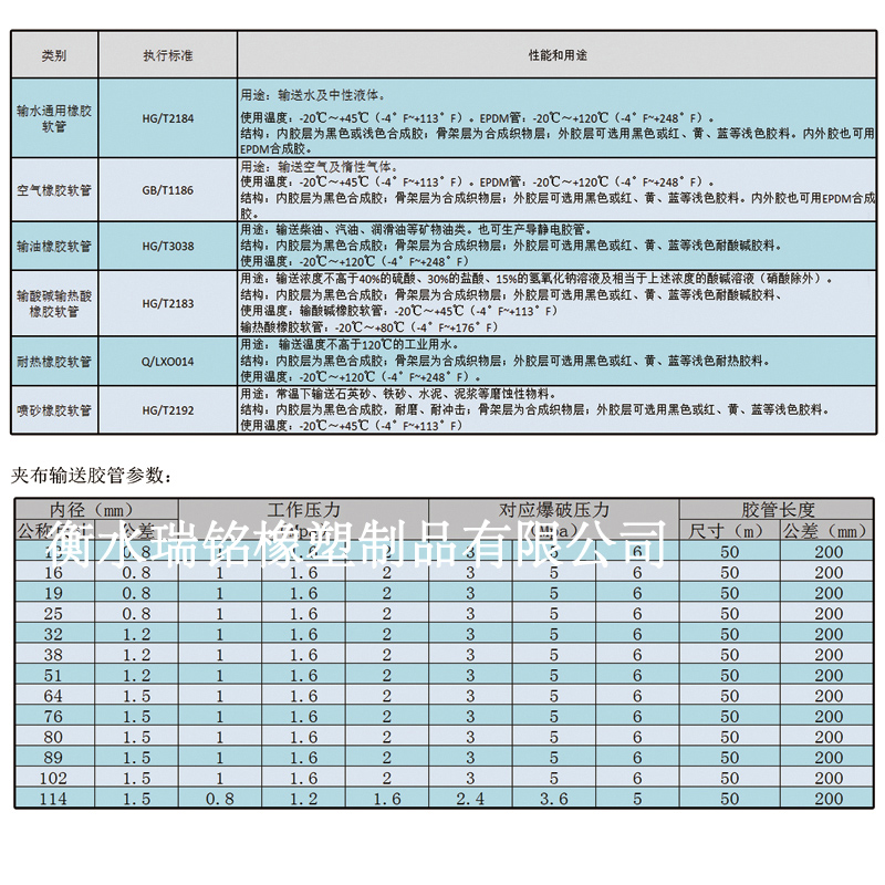 2、耐熱(re)膠管(guan):適用于輸送一百度以下的水。