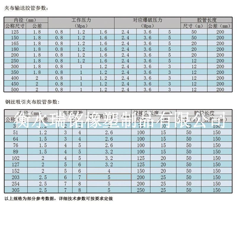 7、 吸排水、油膠管:工作壓力1.0-1