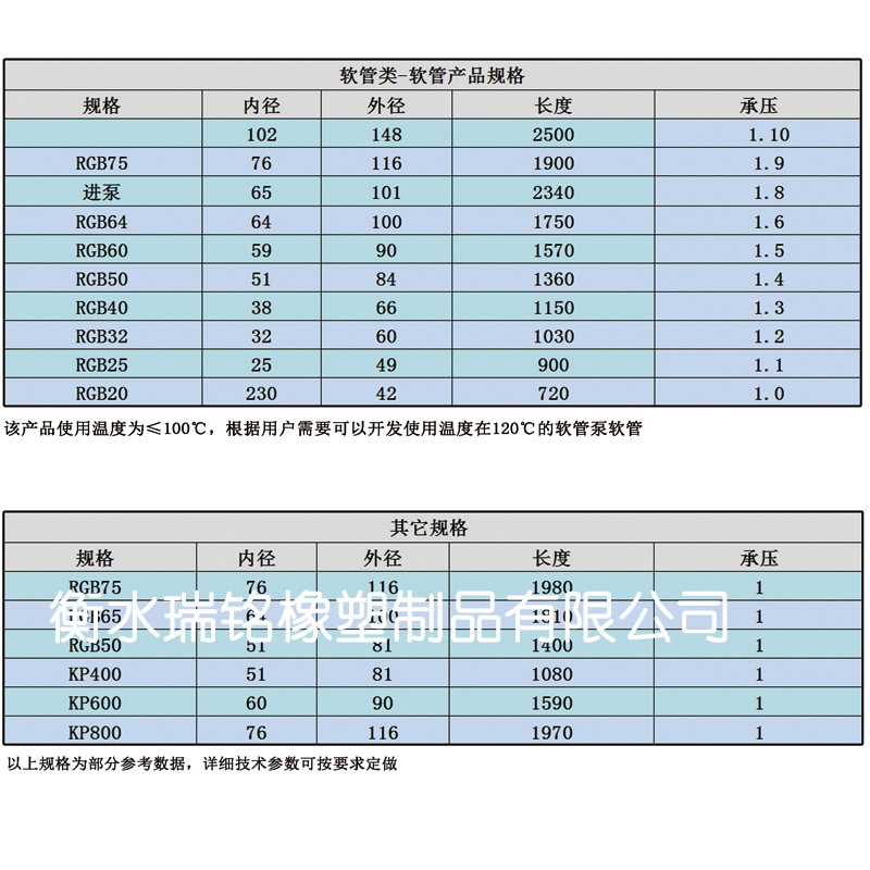 該產品使用溫度為≤100℃,根據用戶需要可以開發使用溫度在120℃的軟管