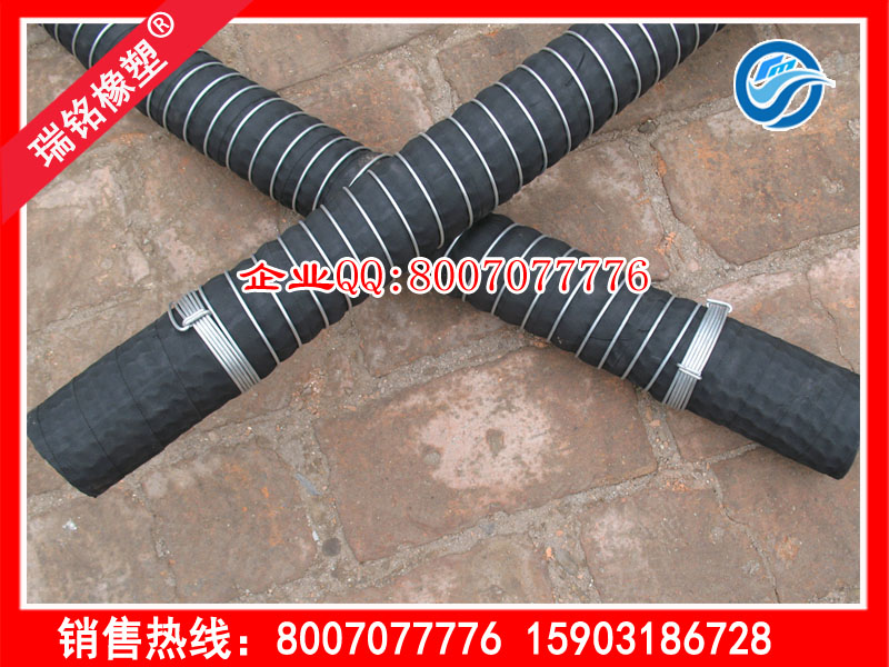 1、組成及特點:管壁由內膠層、織物層、螺旋金屬鋼絲、中膠層和外膠層五部分構成,管體堅固,曲撓性好。 2、分類及用途:根據膠層耐介質性質可分為吸水管、吸酸管、吸油管等,廣泛應用于農業排灌、工礦、土建、水利工程等。 3、規格型號(內徑):25~610mm。 4、工作壓力:排泄壓力:0.3Mpa 吸引壓力:63Kpa以下。 5、長度:10m、6.1m(20’)、9.15m(30’)