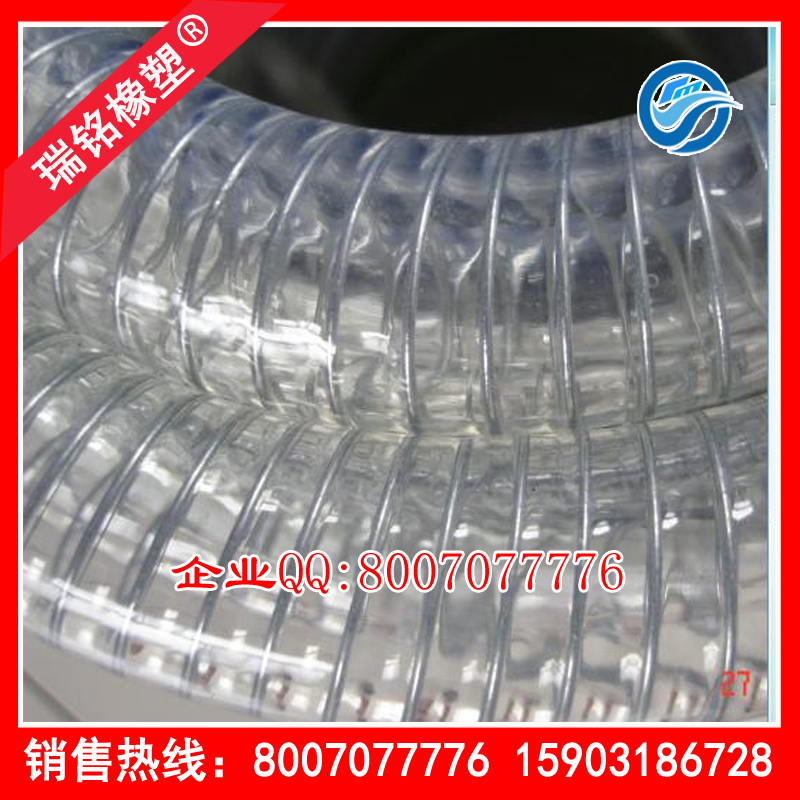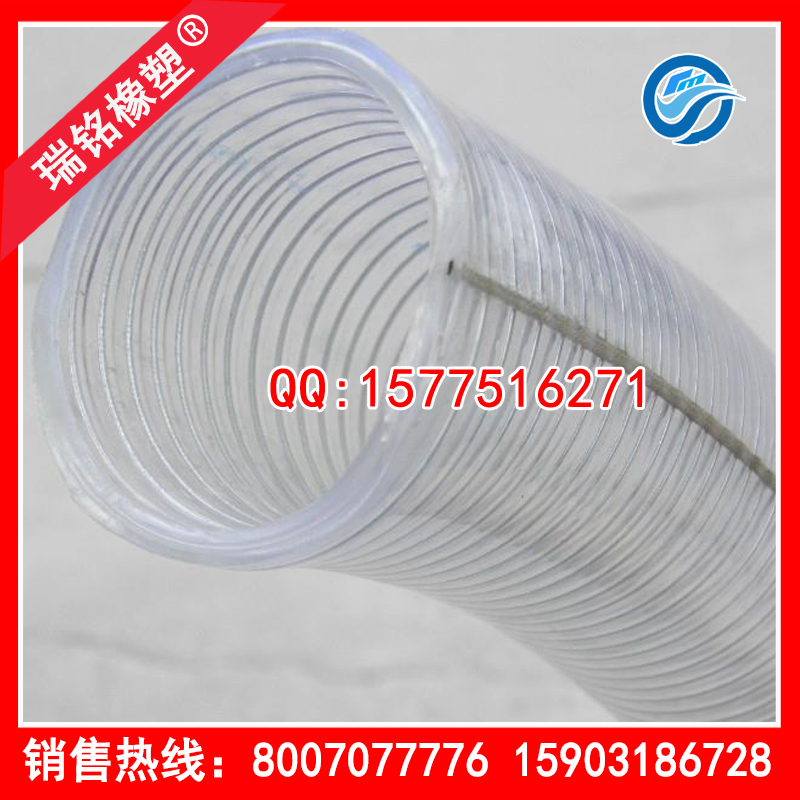 特性:該產品采用特殊TPU內嵌螺旋鋼絲加工而成,具有耐磨(優于橡膠3-4倍:軟PVC6-7倍)耐老化、抗撕裂、高透明可觀察抽吸和輸送過程,重量輕、伸縮性好、良好回彈性和低溫壓縮性等性能,有超高的強度及超長的使用壽命。