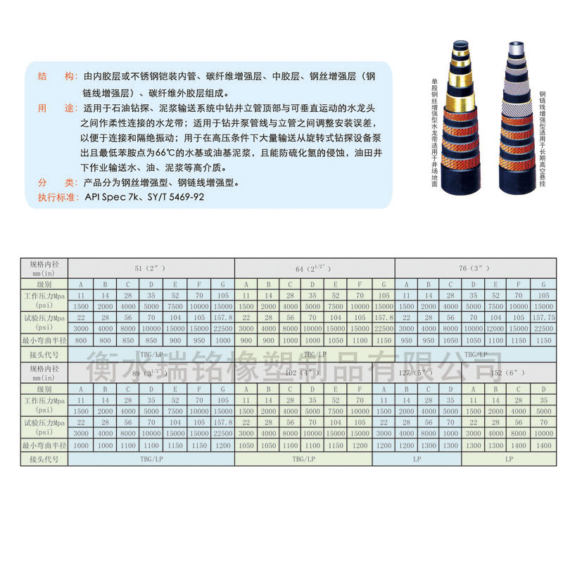 結構:由內膠層、內膠保護層、中膠層、鋼絲纏繞層和外膠層組成。