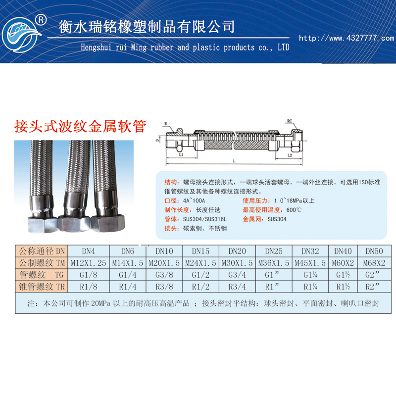 波紋金屬軟管(英文(wen)名稱(cheng)Corrugated metal hose)是(shi)金(jin)屬軟管(guan)系(xi)列(lie)產(chan)品其一,波紋金(jin)屬軟管(guan)(簡稱軟(ruan)管)是(shi)現代工業管路中(zhong)一種高品質的(de)柔(rou)性(xing)管道,具有良好的(de)柔(rou)軟(ruan)(ruan)性(xing)、抗疲勞性(xing)及(ji)承壓高、耐溫性(xing)好、耐腐(fu)蝕、密封性(xing)強等諸(zhu)多特性(xing),比其它軟(ruan)(ruan)管(橡膠(jiao)軟管、塑料軟管)的壽命(ming)高許多。它廣泛應用于航空、航天、石油、化(hua)工、鋼(gang)鐵(tie)、電力、造紙、建筑、橡膠、紡織印(yin)染(ran)、醫藥(yao)、食品(pin)、交通運(yun)輸等行業(ye)中(zhong)。隨著現代工業(ye)的發展,對高質(zhi)量、高性能(neng)波紋金屬軟管的需求量會越來越大。