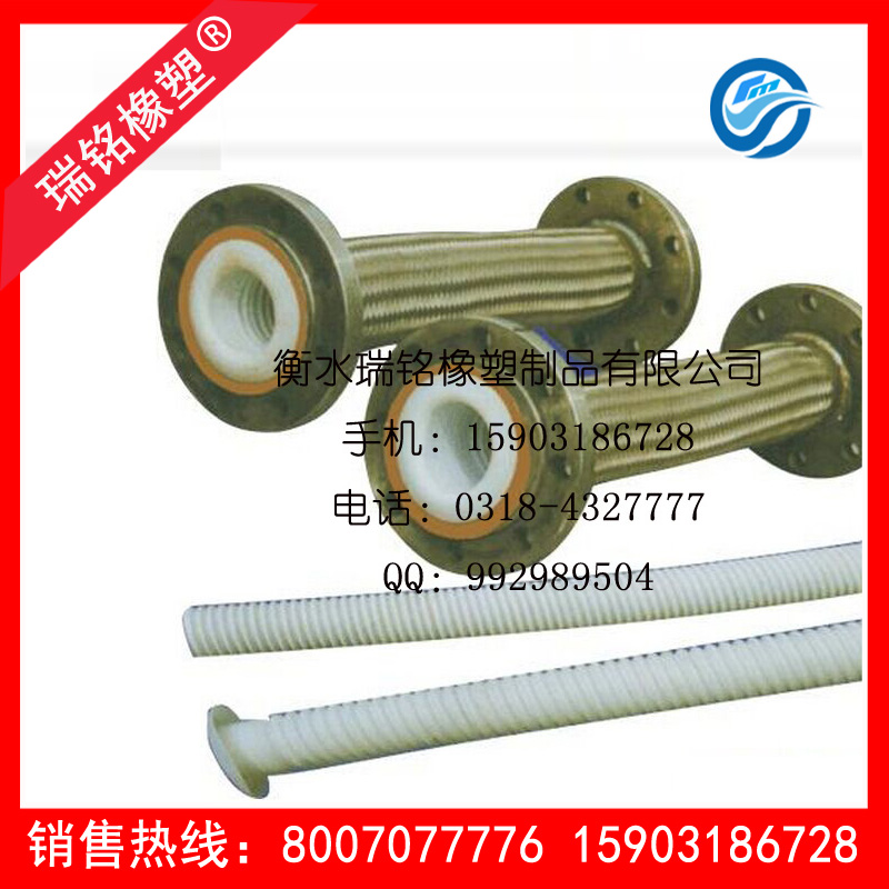 內襯四氟金屬軟管兩端的接頭:接頭主要包括螺紋連接、法蘭連接、快速接頭連接。兩端法蘭密封面全為四氟材質,保證輸送安全可靠軟管(可負壓)。