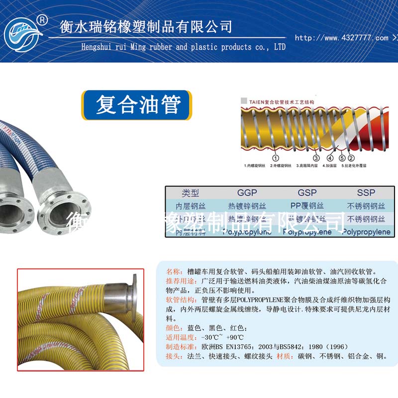 6、提供個性化、專業、高效、完善的服務 應用地點:做為液態石化介質傳輸的軟連接,復合軟管專門設計應用在槽(罐)車、罐庫區、化工/煉油廠、石化船、石化碼頭等一些經常需要安裝、拆卸及搬動軟管的地方。