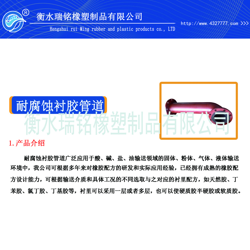 防腐襯膠管 襯里膠可是硬膠、半硬膠或軟膠,還可交替使用,也可是多層(如一層硬膠、一層軟膠)。