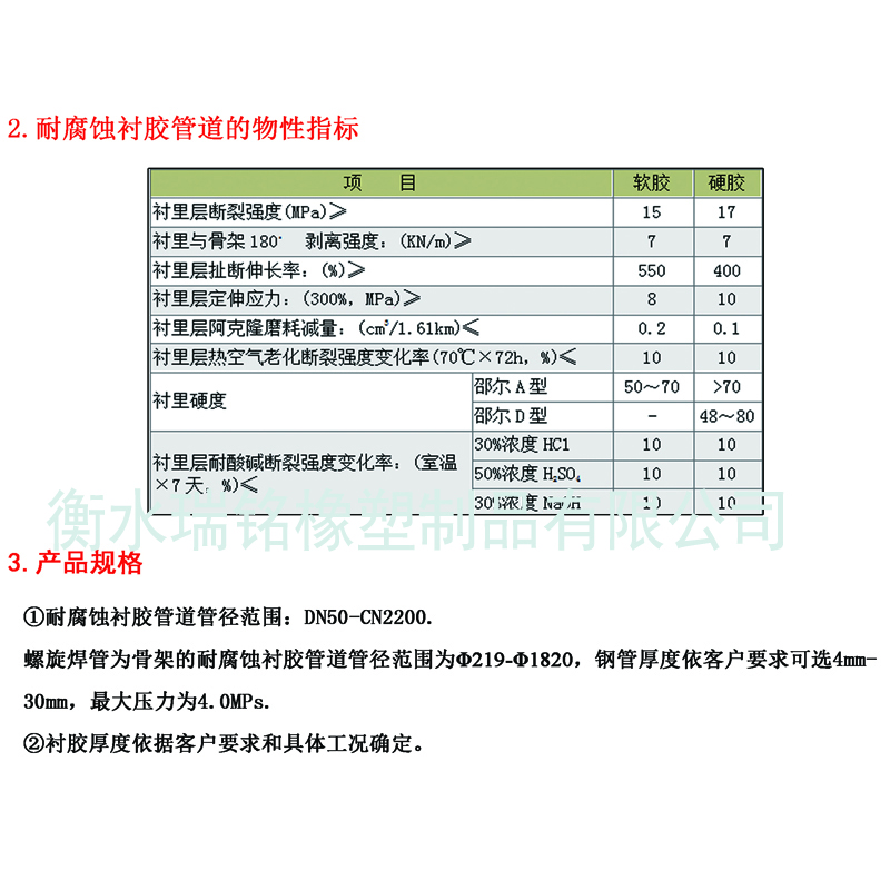 (1)防腐襯膠管物性指標