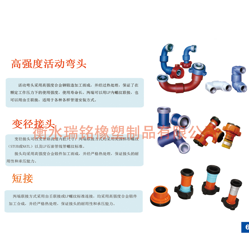 ~20000psi),分為常溫型、低溫型和含硫氣體型。活動彎頭包含長半徑和短半徑兩種類型,長半徑活動彎頭有