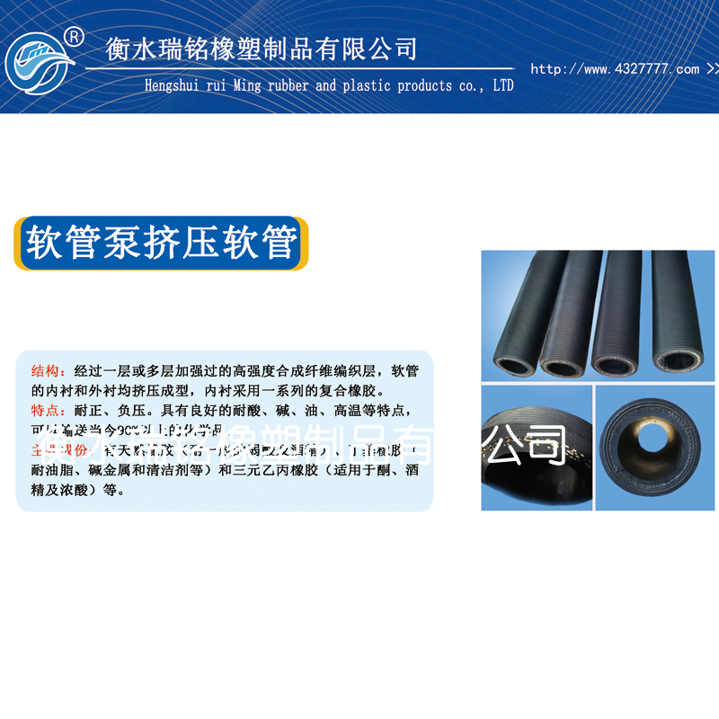 結構:經過一層或多層加強過的高強度合成纖維編織層,軟管的內襯和外襯均擠壓成型,內襯采用一系列的復合橡膠。