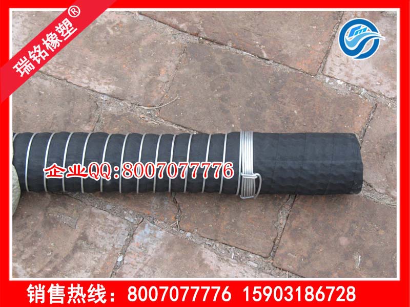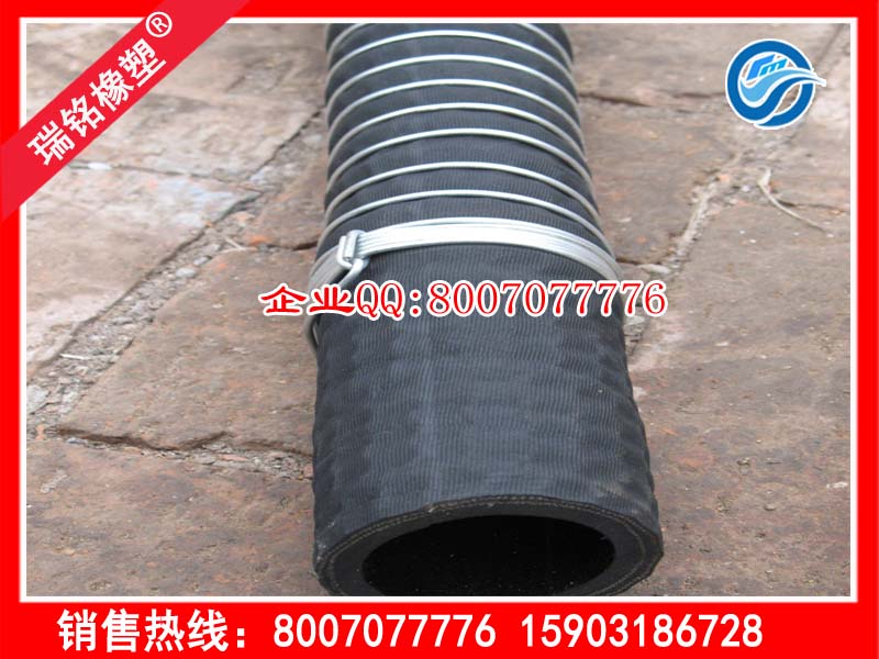 1、組成及特點:管壁由內膠層、織物層、螺旋金屬鋼絲、中膠層和外膠層五部分構成,管體堅固,曲撓性好。 2、分類及用途:根據膠層耐介質性質可分為吸水管、吸酸管、吸油管等,廣泛應用于農業排灌、工礦、土建、水利工程等。 3、規格型號(內徑):25~610mm。 4、工作壓力:排泄壓力:0.3Mpa 吸引壓力:63Kpa以下。 5、長度:10m、6.1m(20’)、9.15m(30’)