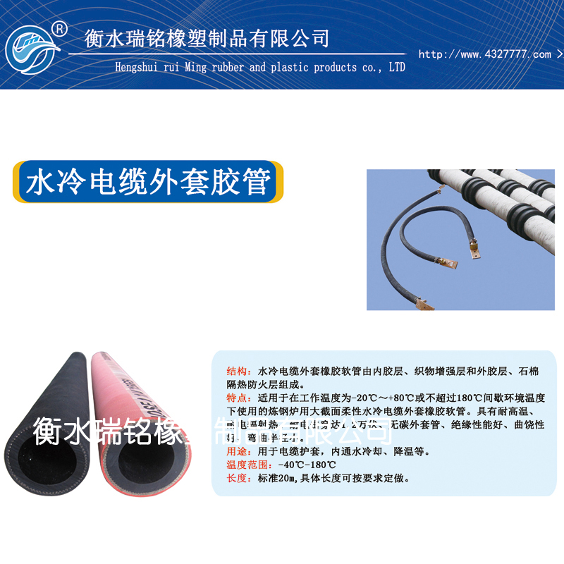 水冷電纜外套膠管具有耐高溫、耐電輻射熱、耐電擊穿達3萬伏、無碳外套管、絕緣性能好、曲饒性好、彎曲半徑小。